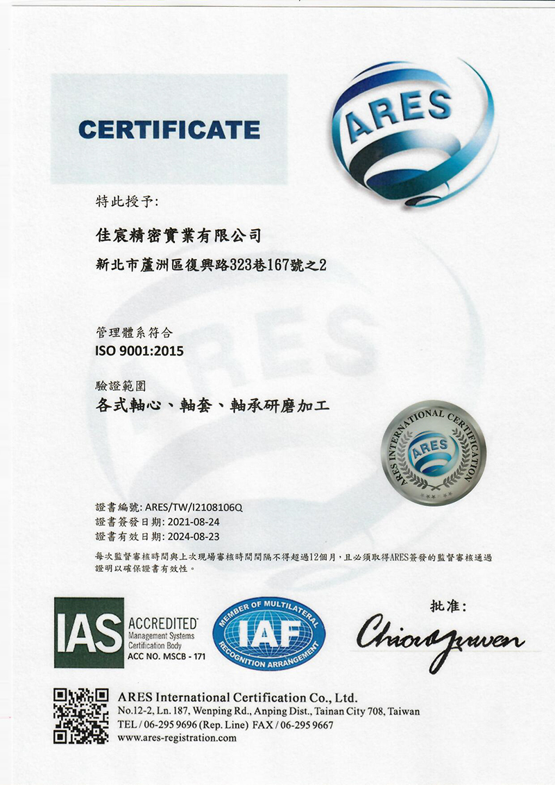 自2003年創立以來,佳宸精密始終秉持「精益求精」的理念,專注於工具機專用滾子凸輪軸承領域逾二十年。憑藉先進製造技術、嚴謹品質管控與持續創新精神,我們贏得了全球高端產業的信賴與肯定。